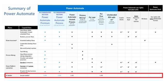 אז כדי להבין איך מיקרוסופט מחשבים את כמות הקרדיטים צריך כמובן להבין באיזה מודל אתם משתמשים ומה אתם עושים – שימוש נפוץ ב-Flow הוא באמצעות Run A Prompt ופה נדרש להבין באיזה מודל אתם משתמשים , Mini, רגיל , GPT-5 מודלי O3 בכל מקרה החישוב נעשה לפי הטבלה המופיעה בחוברת הרישוי הרשמית של מיקרוסופט
