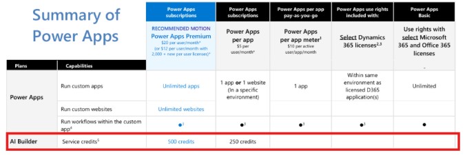 כמות הקרדיטים של AI Builder נגזרת מכמות הרישוי פרימיום שיש לכם ל-PowerApps / Power Automate ועוד רישיונות אחרים המספקים תוספת קרדיטים לטננט.