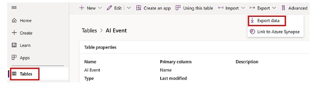 - היכנסו ל-Power Apps בסביבה שלך ובתפריט השמאלי בחר Tables