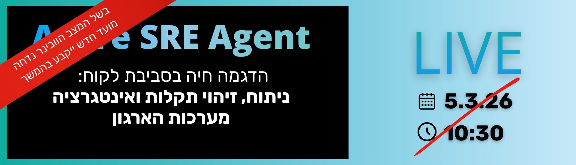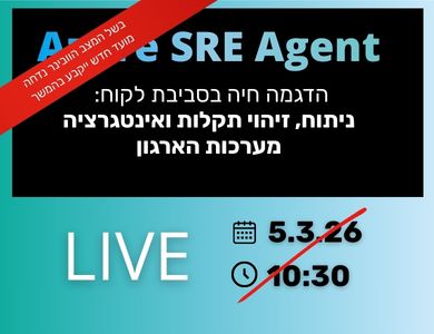 מוזמנים להצטרף לוובינר חשוב, שבו נראה איך Azure SRE Agent עובד באמת ולא רק בתיאוריה. אם אתם מנהלים מערכות קריטיות על Azure ורוצים לקצר זמני טיפול בתקלות, להוריד עומס התראות ולהכניס AI לתפעול היומיומי- זה בדיוק בשבילכם.